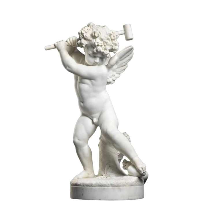 Statua di Angelo in Marmo Bianco Personalizzabile, Cupido Alato Scolpito a Mano per Interni ed Esterni, Giardini e Ville