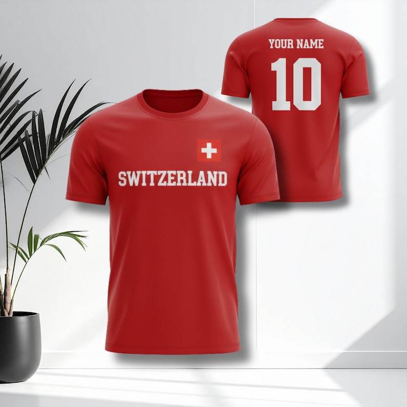 Set di Maglie da Calcio Personalizzabili Ispirate alla Svizzera, Rosso e Bianco, per Tifosi, con Nome e Numero, Prodotto Accessorio