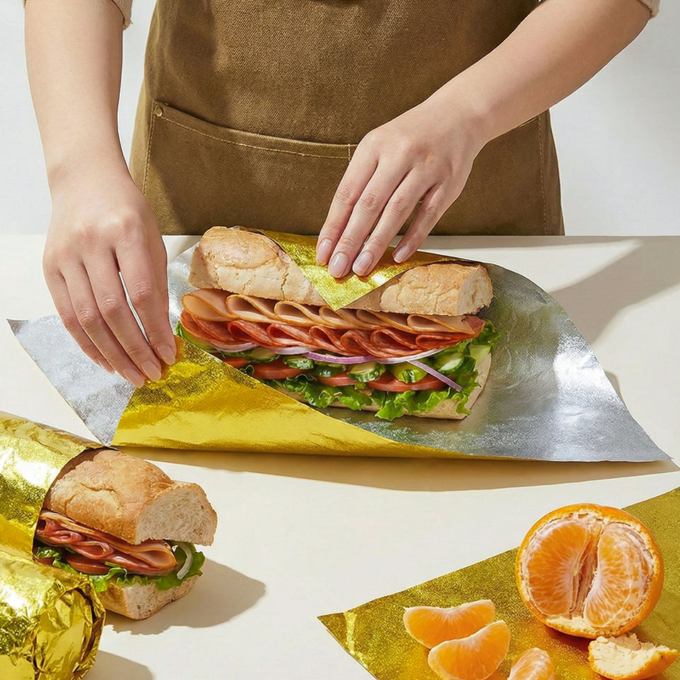 Carta da Imballaggio in Alluminio Laminato Personalizzabile, Impermeabile e Anti-Grasso, per Alimenti, Ideale per Hamburger e Sandwich
