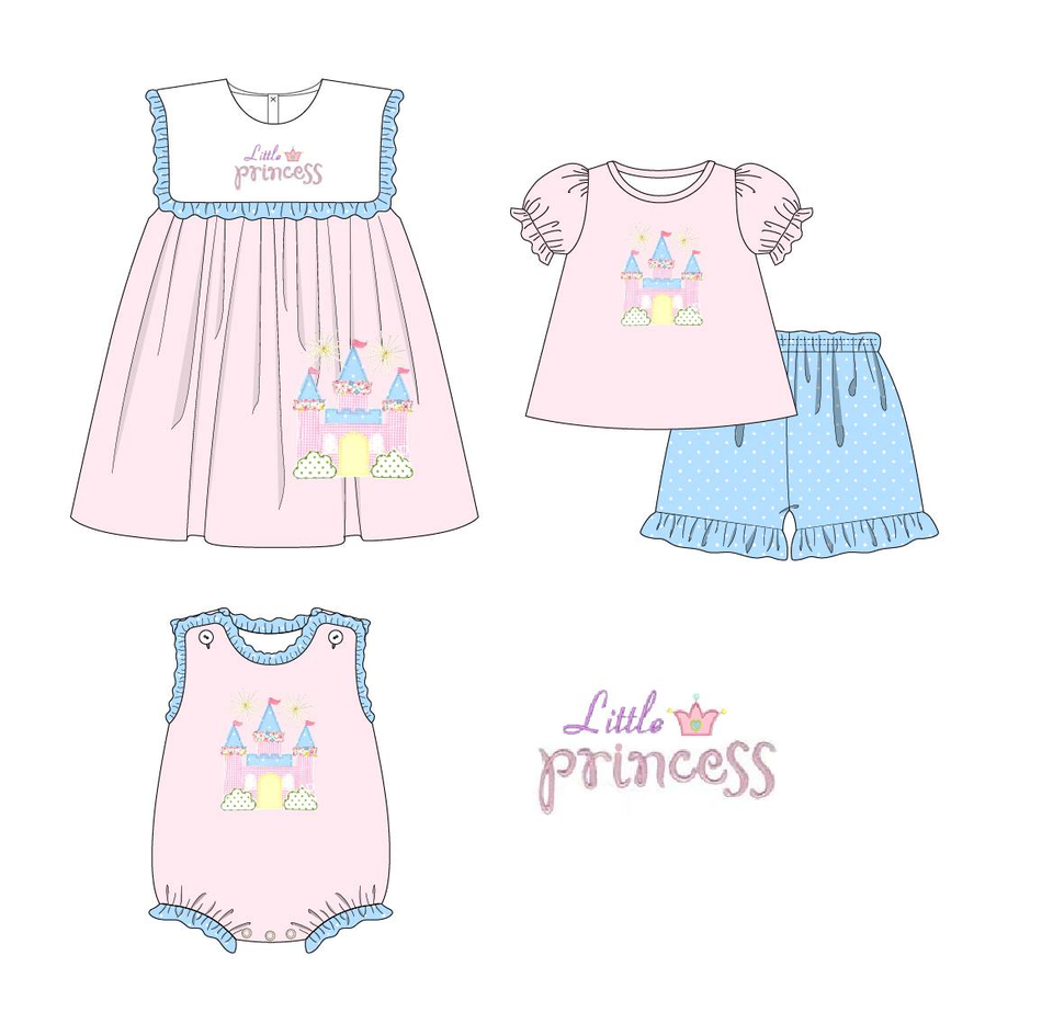 Personalizzazione Pre-ordina vestiti per neonata occidentali pantaloncini estivi rosa castello con volant set di abbigliamento Boutique per bambine