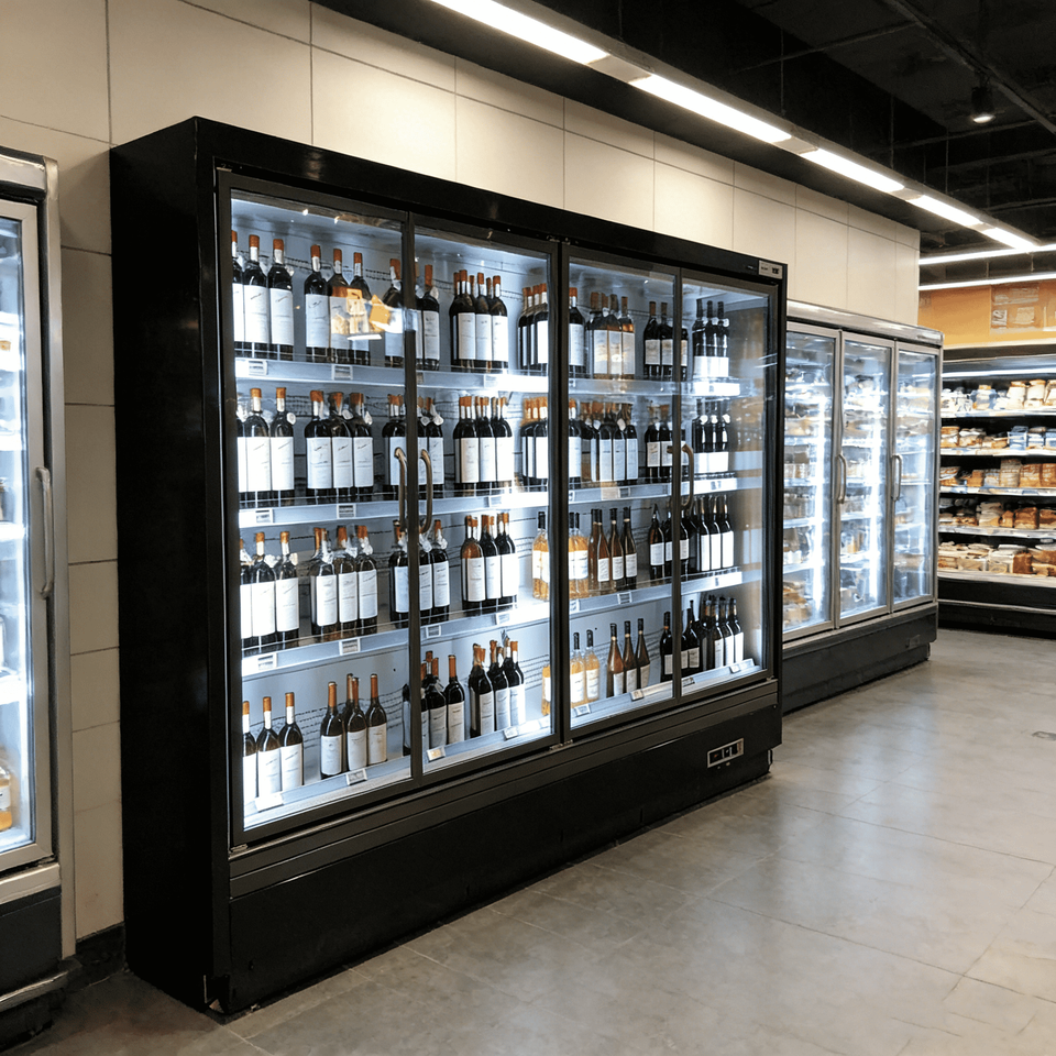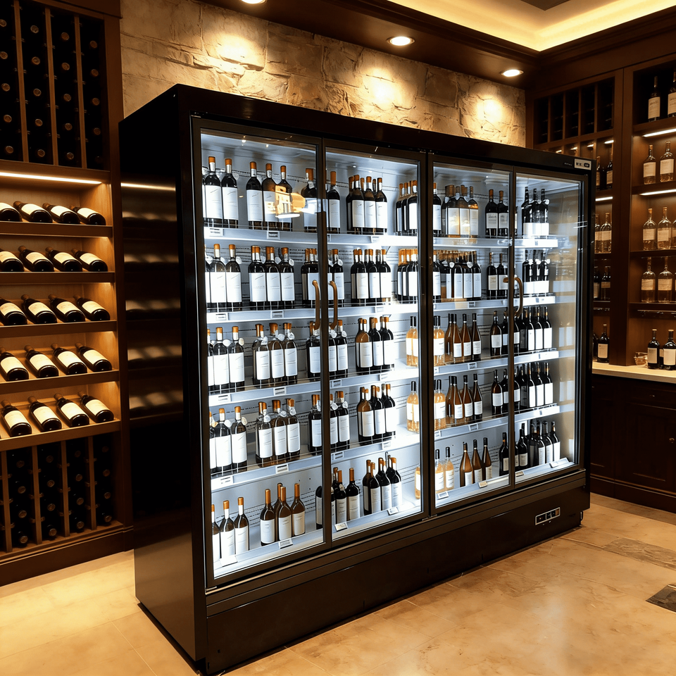 Frigorifero Verticale Personalizzabile per Supermercati, Vetrina Refrigerata Commerciale con Porta in Vetro per Bevande e Vini