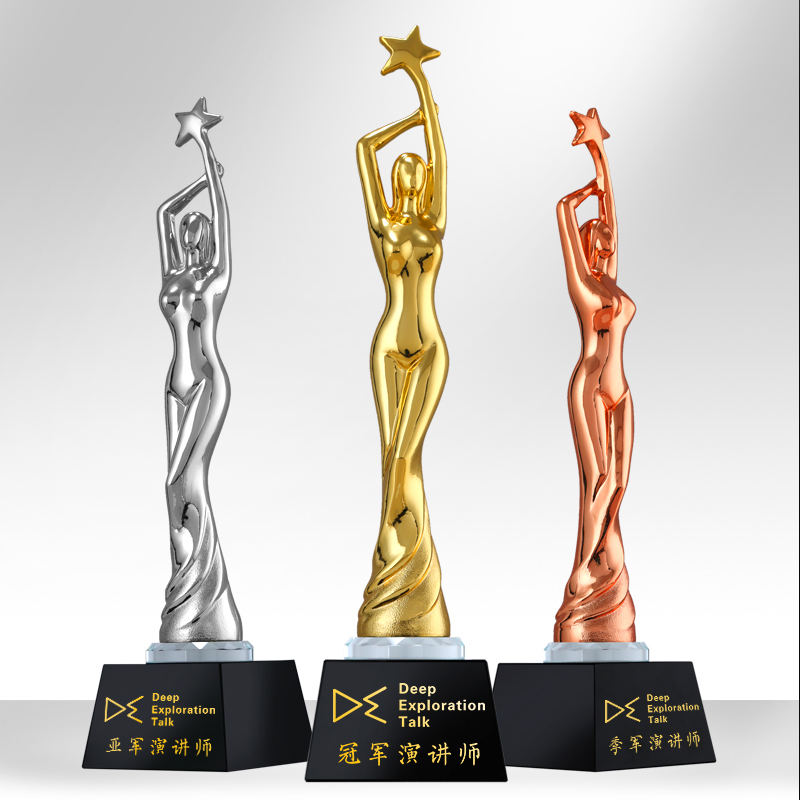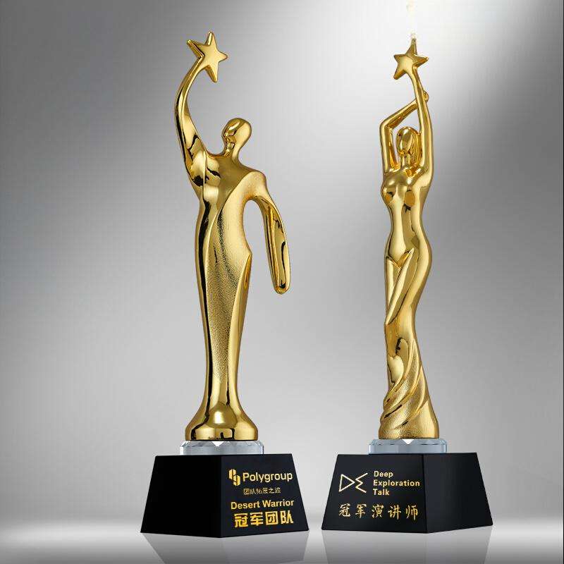 Premi trofeo commemorativo trofeo in metallo placcato oro con stella a cinque punte in oro