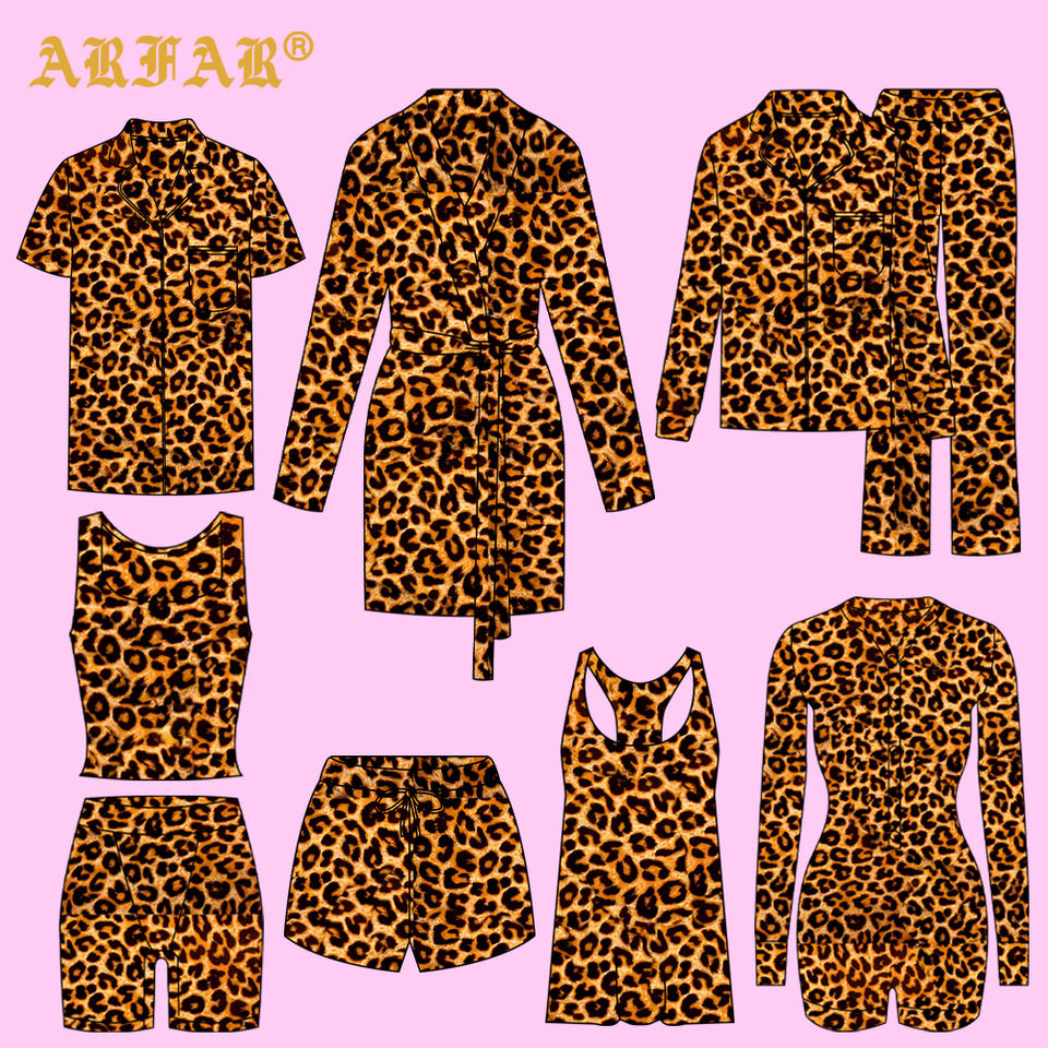 Set Personalizzato 2 Pezzi con Stampa Ghepardo e Leopardo, Pigiama in Bambù per Donna, Maglietta con Maniche Raglan e Pantaloncini, Abbigliamento Femminile