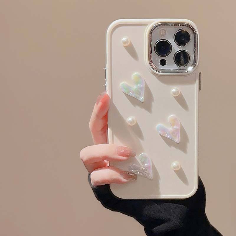 Personalizza la custodia per cellulare in TPU con cerchio per fotocamera elettrolitico con cuore amorevole con perline bianche cremose per Iphone 7 8 Plus X Xr Xs Max