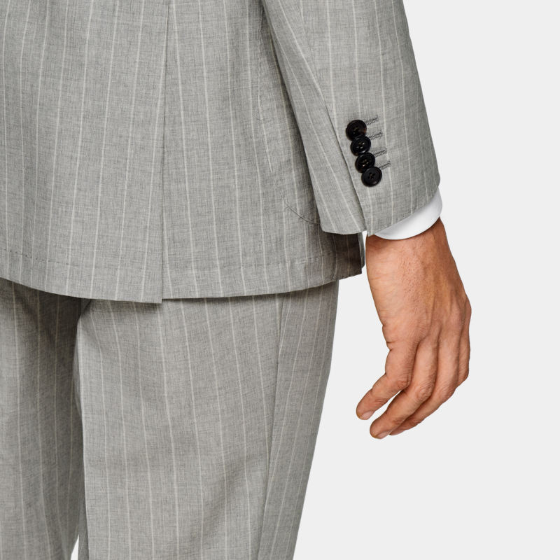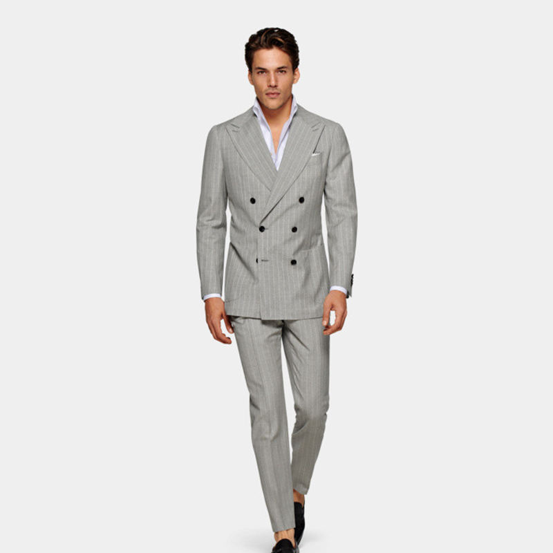 Customize Fashion City Light Gray S130 Wool Double-breasted Men's Slim Suit