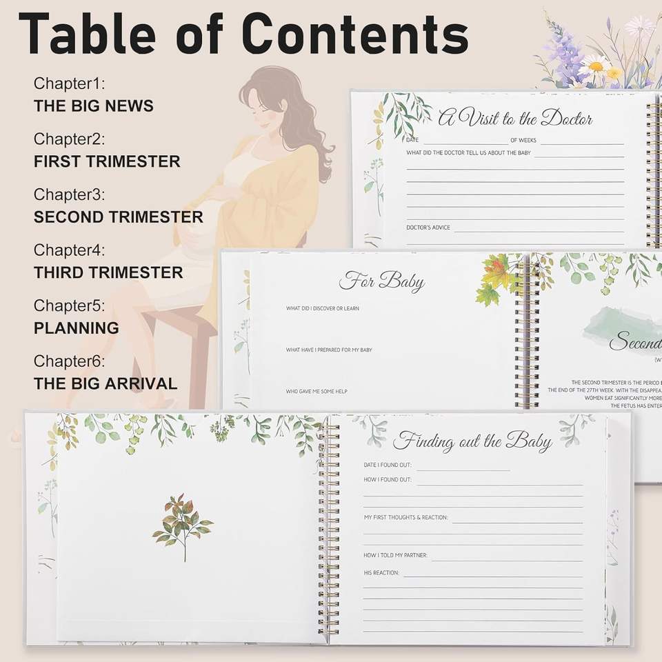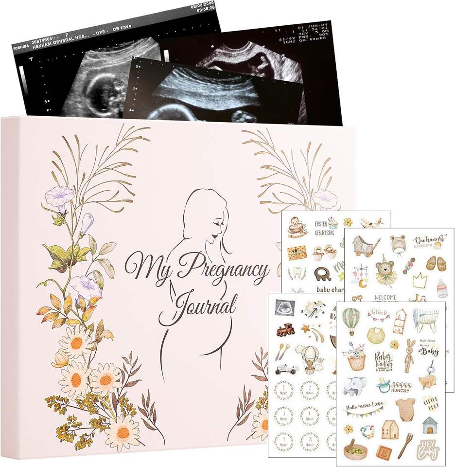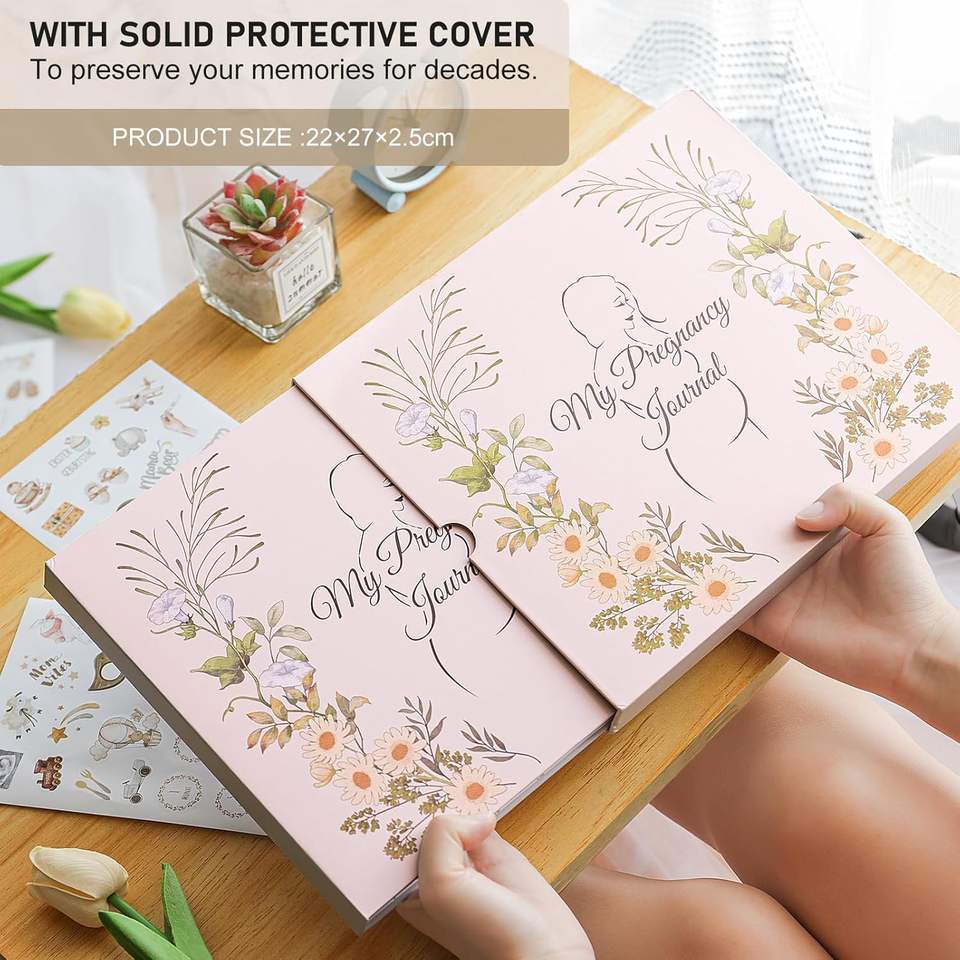 Libro dei Ricordi della Gravidanza Personalizzato per Mamme Prima del Parto, 135 Pagine, Copertina Rigida con Adesivi
