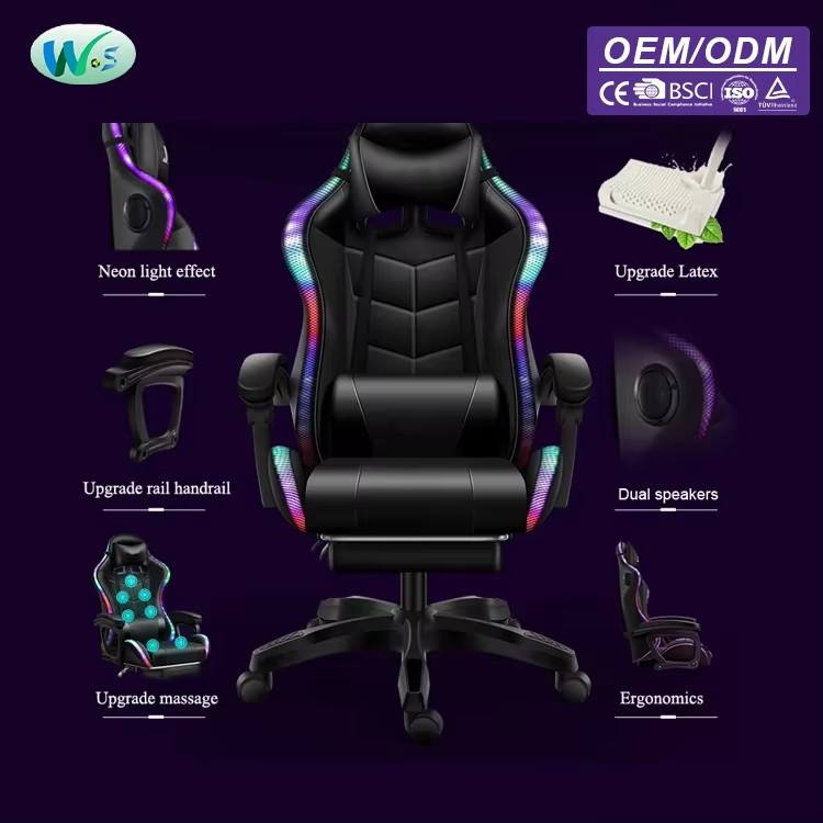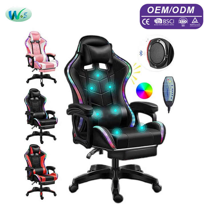 Sedia da Gaming Personalizzabile con Massaggio, Sedie Professionali per Videogiochi, Sedia da Gamer RGB WS8474