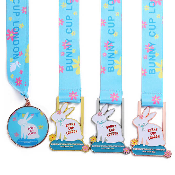 Customize Gold Silver Bronze Rabbit Animal Design Logo Kids GYM Gymnastics Name Medal with UV Printing