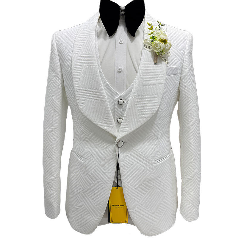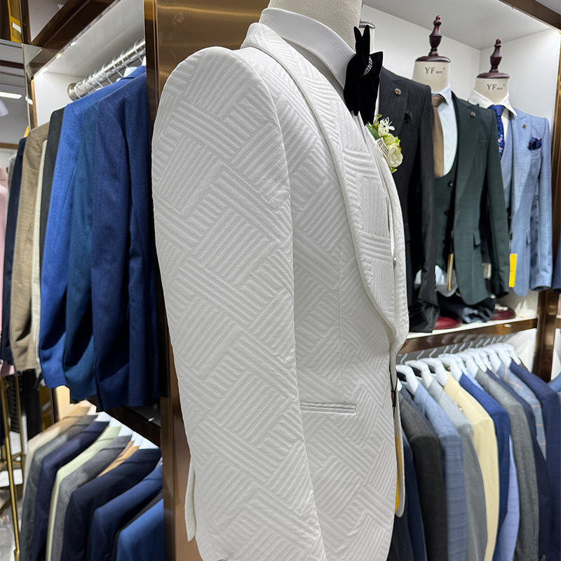Customize Ode Oem Men's White Wedding Casual Host Suit 3-Piece Set Trade Flat Front Style Zipper Fly Worsted Tuxedo