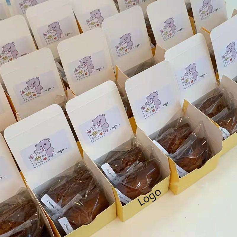 Personalizzare la scatola di ciambella singola riciclabile in cartone avorio scatola quadrata gialla e rosa con logo