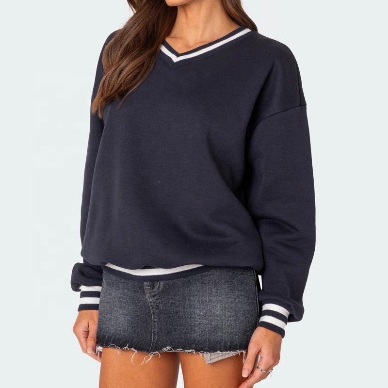 Personalizzare all'ingrosso la fabbrica di abbigliamento di vendita calda manica lunga maglione donna Oversize Casual Street Wear maglione con scollo a V felpe