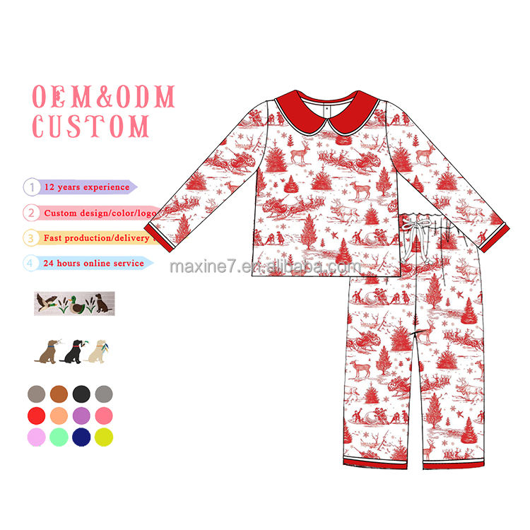 Customize Winter Peter Pan Collar Girls Clothing New Year&Christmas Pyjamas Girls Sleepwears Sibling Pajamas Set
