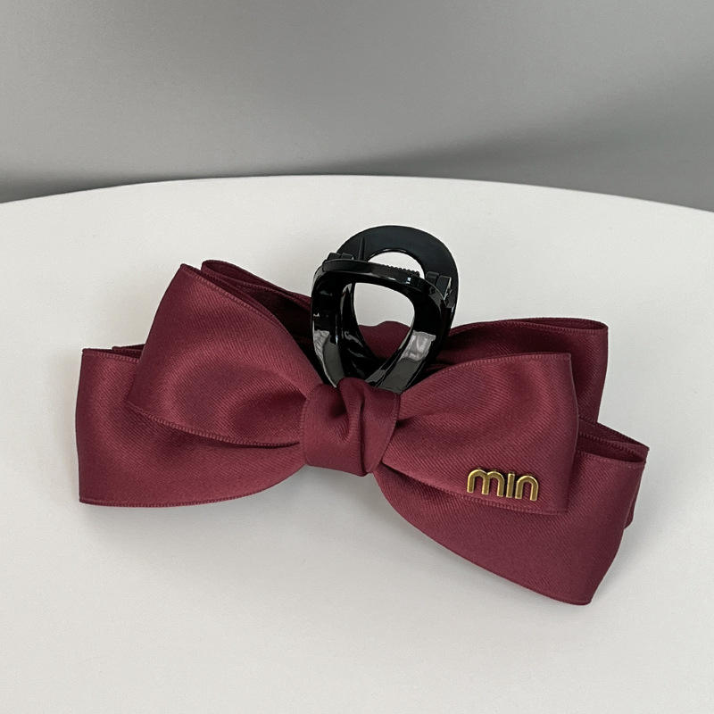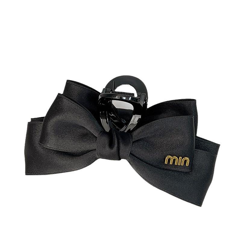 Fermaglio per Capelli Personalizzabile da Donna e Ragazza, Grande, Bianco Crema con Fiocco Nero Carino in Raso Lussuoso, con Artigli in Metallo, Accessorio per Capelli Originale