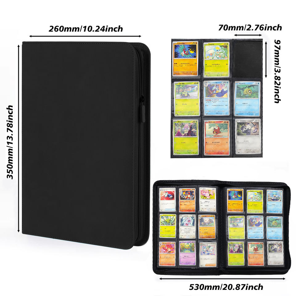 Raccoglitore per Carte Personalizzabile in Pelle PU con Cerniera, 9 Tasche per Carte Collezionabili Fronte-Retro, Album Porta Carte per MTG TCG PKM
