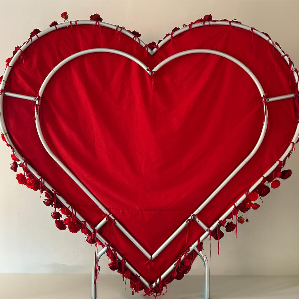 Personalizza una Romantica Parete Floreale per Matrimoni con Base in Tessuto a Forma di Cuore Rosso/Arancione 5D con Sfondo di 2,4x2,4 Metri