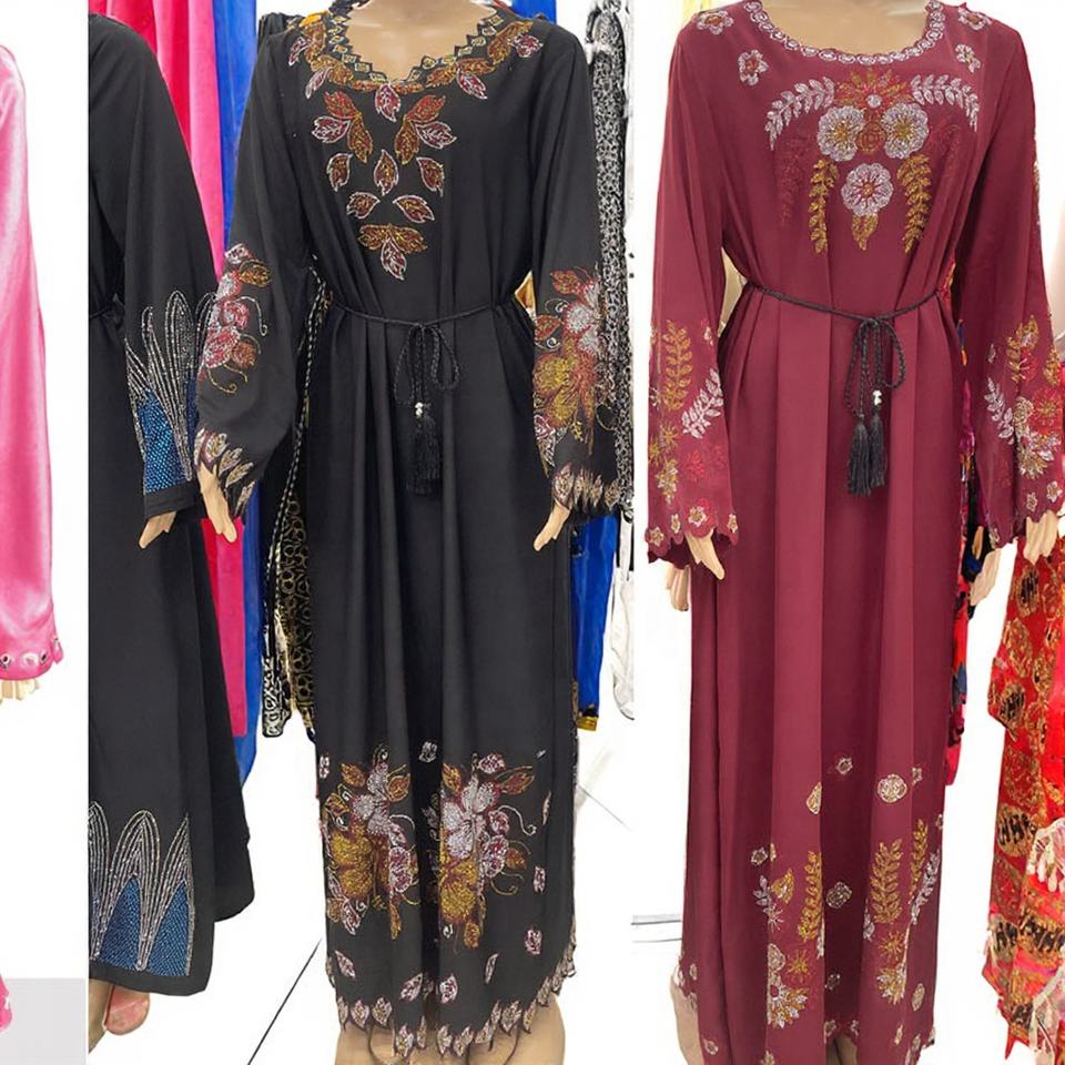 CustomizeVintage Women's Abaya African Traditional Dress with Rhinestone Breathable One Size ForMuslim Women Dress Scarf One Set
