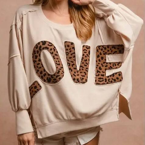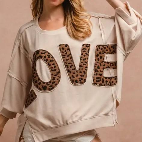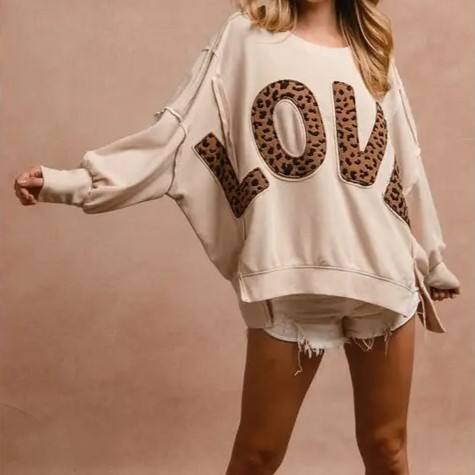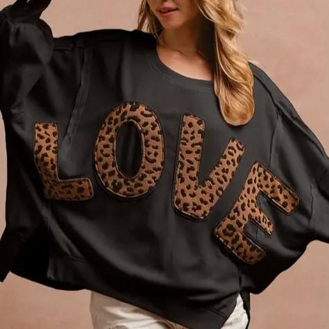 Su misura 2025 autunno nuova felpa Casual Pullover con scritta Patchwork leopardata top larghi manica lunga girocollo