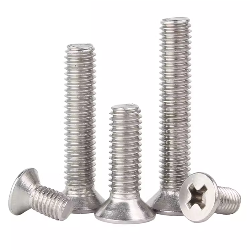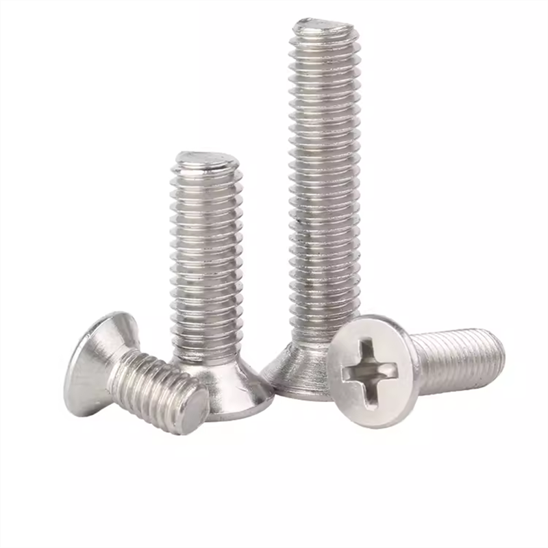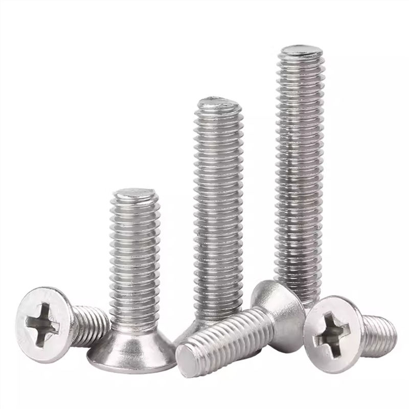 Viti per Legno Personalizzate in Acciaio Inox 304 e Acciaio al Carbonio, Filettatura Metrica ISO Grossa, Testa Piatta con Incavo a Croce