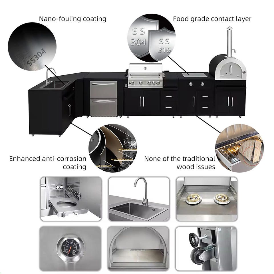 304 su misura in acciaio inox cucina esterna di lusso SS304 modulare cucina esterna Patio esterno cucina con accessorio lavello