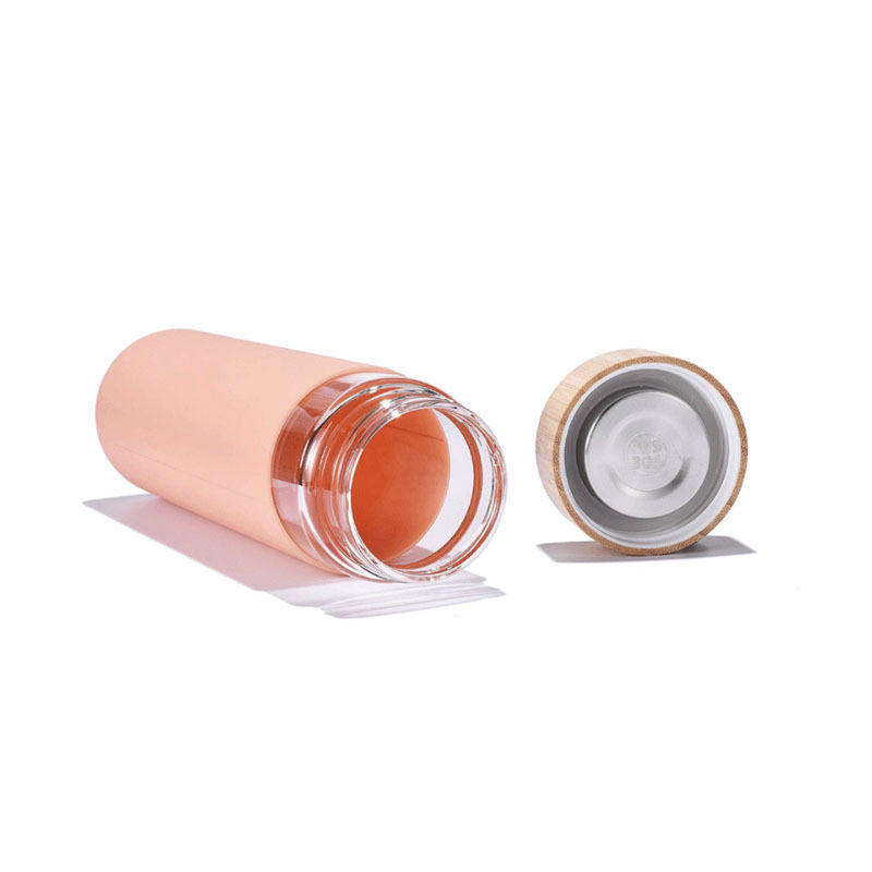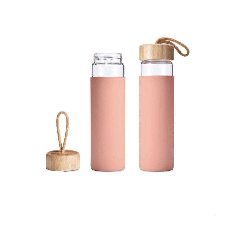 Bottiglia d'Acqua Personalizzata da 500ml in Vetro Trasparente con Coperchio in Bambù e Rivestimento in Silicone