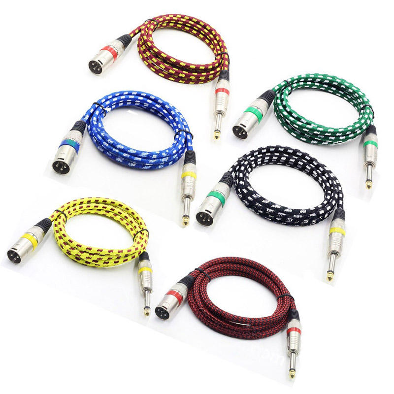 Customized 6.35mm Color Weaving 3-Meter Guitar Line PVC Bass Drum Stand for Electronic Piano Stereo Microphone Sound Card HDTV