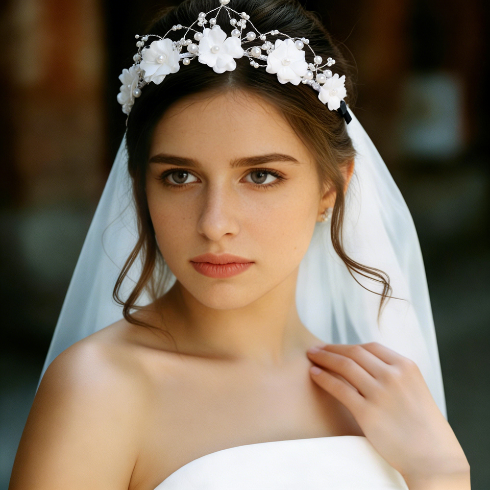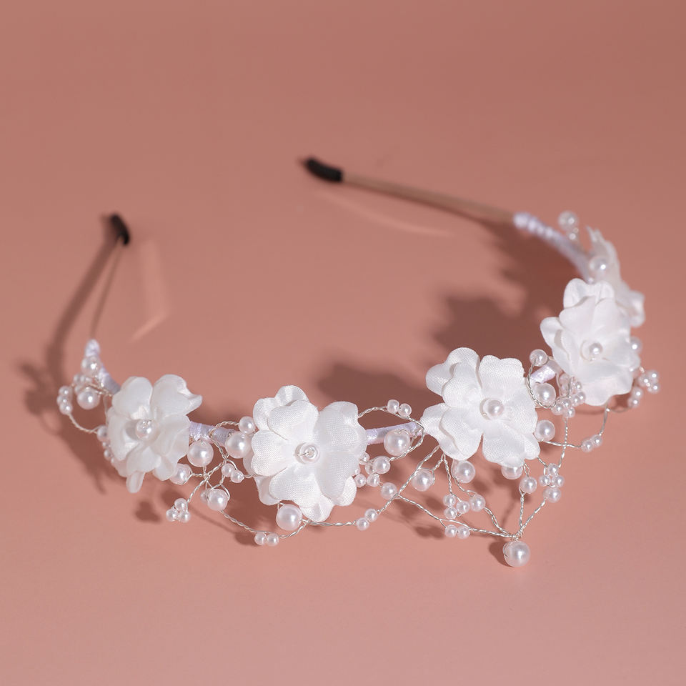 Bridal Pearl Lace Headband Handmade Wedding Hair Crown