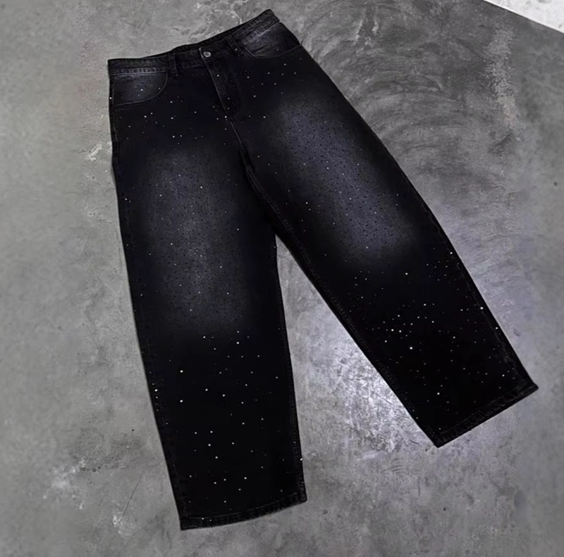Jeans Retro Lavati all'Acido Personalizzati con Stelle per Uomo, Jeans Super Skinny Elasticizzati a Vita Bassa Y2K Slim Fit