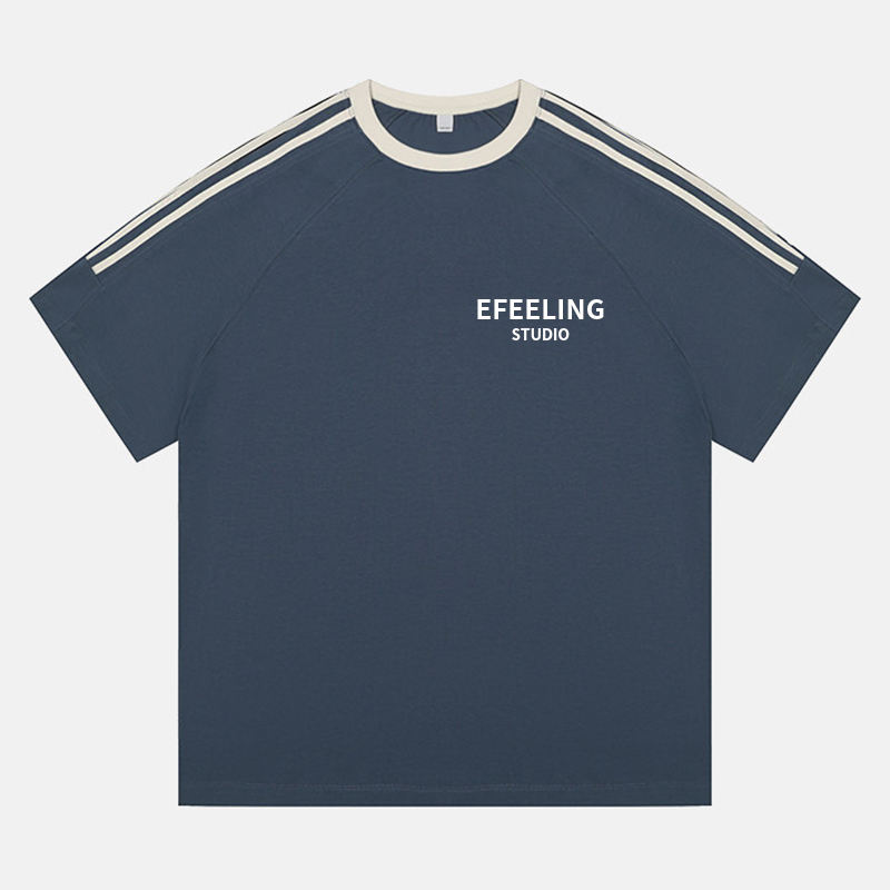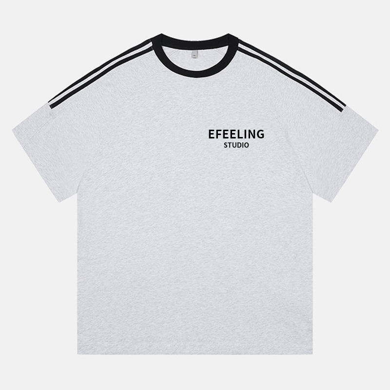 T-Shirt da Uomo Personalizzata in Stile Retrò Americano, Casual, in Cotone a Righe, Design alla Moda