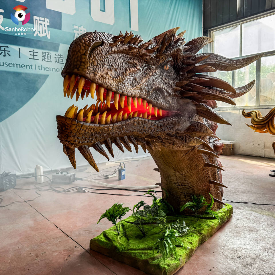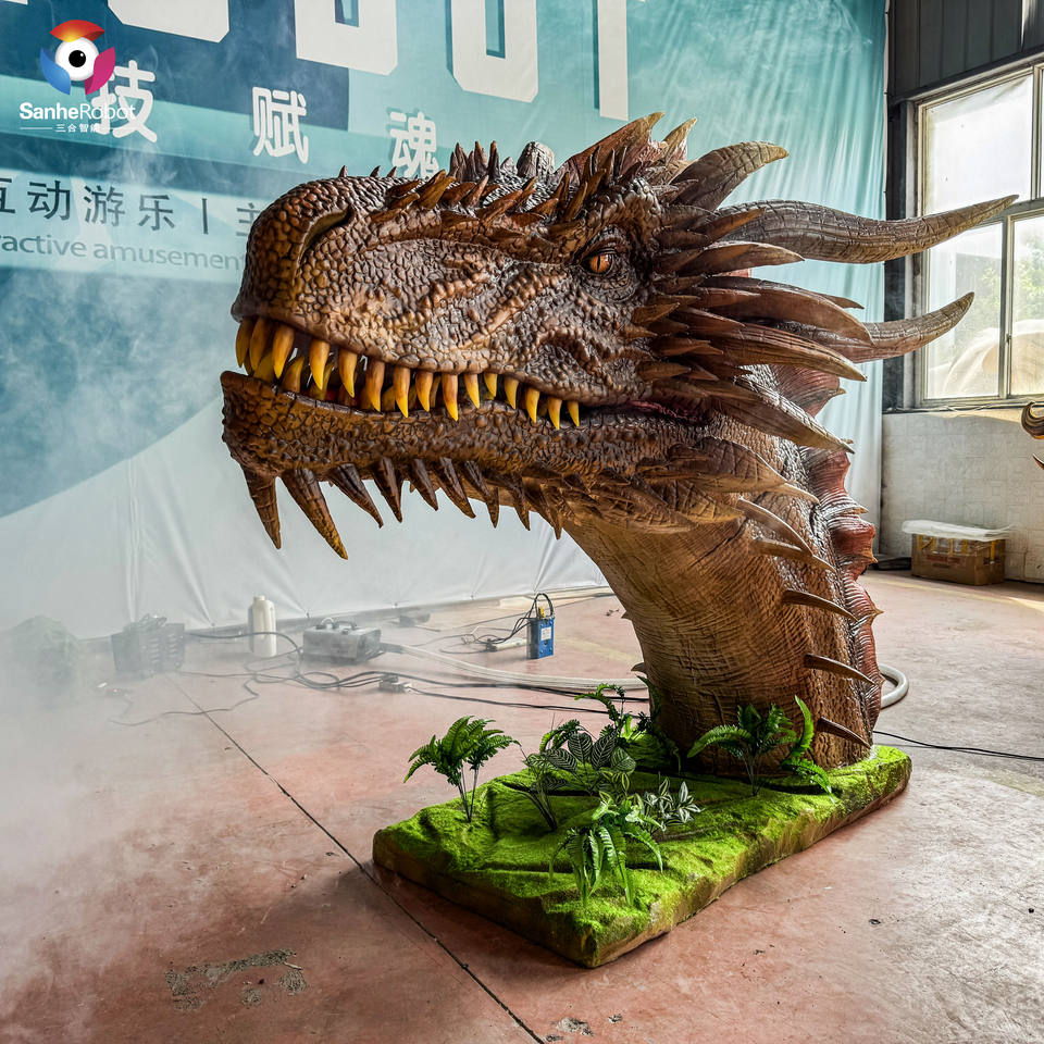 La testa di drago occidentale di simulazione della testa di dinosauro Animatronic personalizzata può sputare fumo dalla bocca per il parco divertimenti Dino