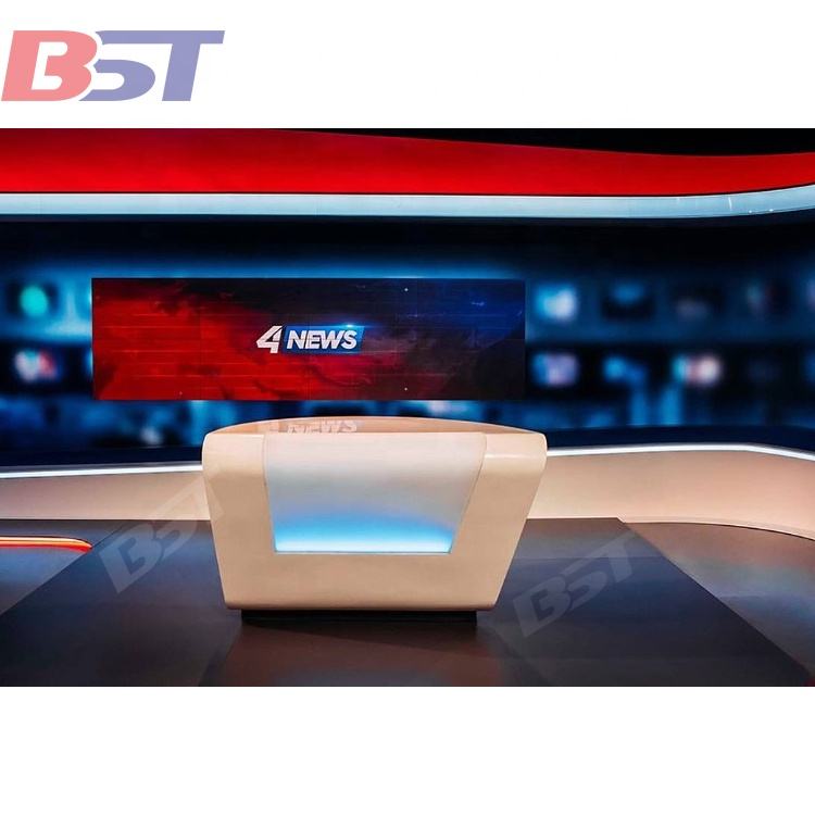 Tavolo Console per Trasmissioni in Pietra Artificiale Personalizzato, Moderno Tavolo da Studio Televisivo con Luci LED, Scrivania per Trasmissioni