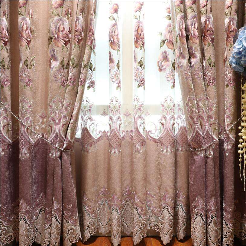 Tenda europea di lusso moderna oscurante personalizzata per finestra da ricamo di alta qualità per soggiorno con mantovana