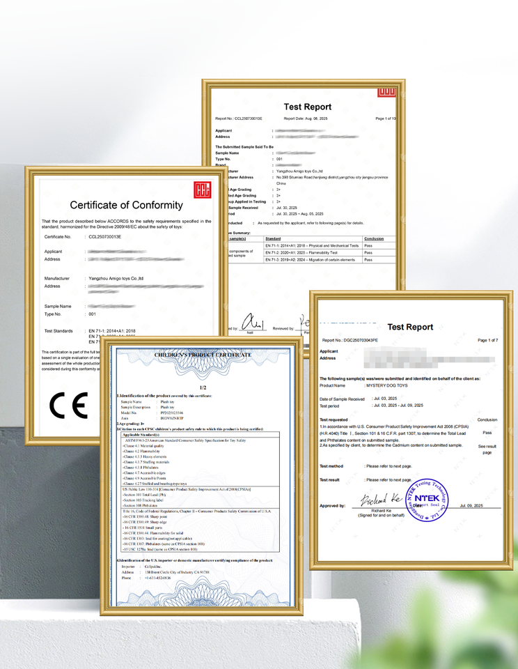 Certificato:CE,EN71,ASTM Certificazioni CE, EN71, ASTM
