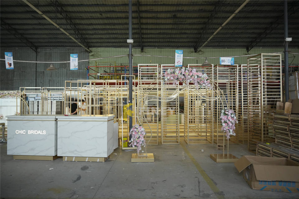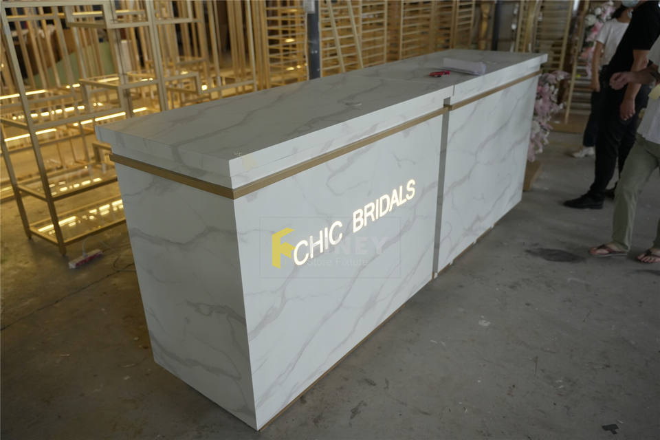 I negozi di abiti da sposa personalizzati per matrimoni mostrano soluzioni di decorazione per l'interior Design del negozio nuziale di lusso