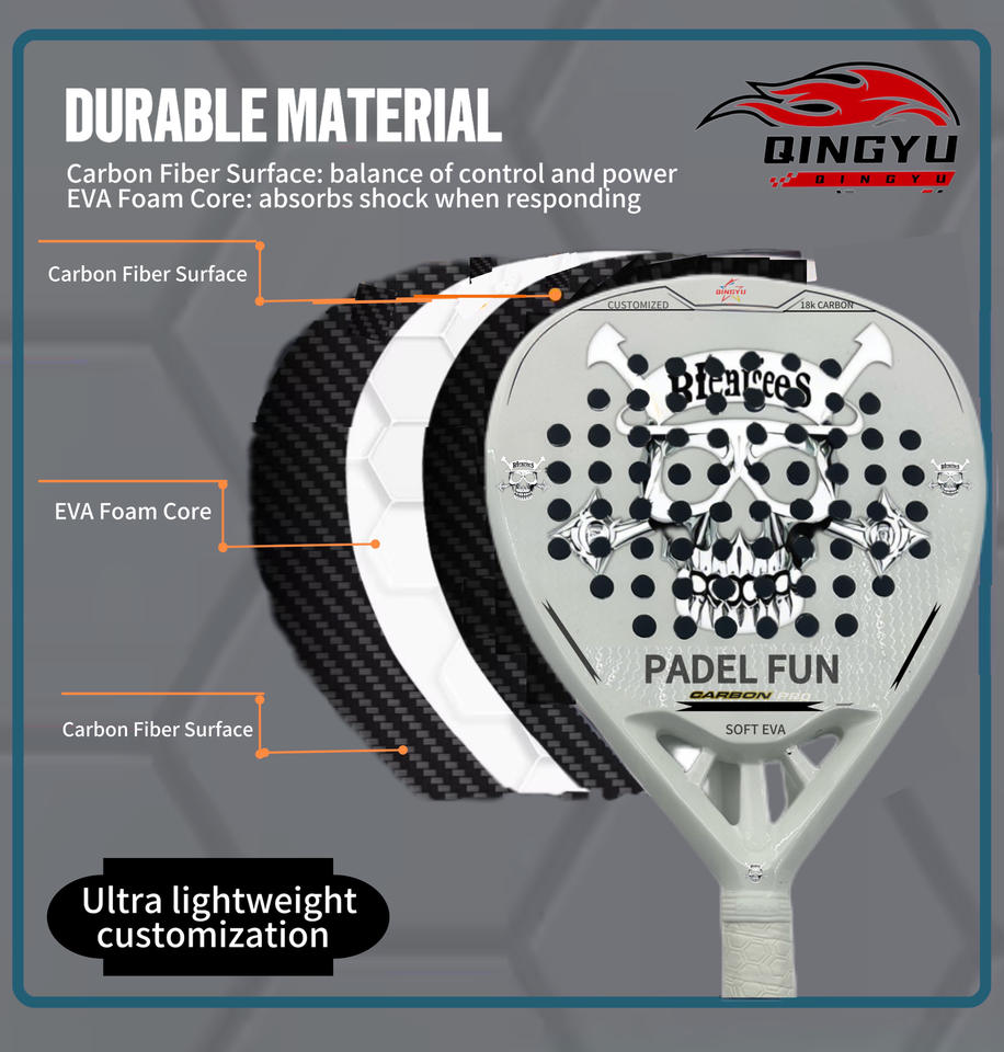 Customized Carbon Fiber EVA Foam Core Fiberglass Paddle Padel Tennis Racket Padel-Lightweight Strength Tennis Paletas De Padel