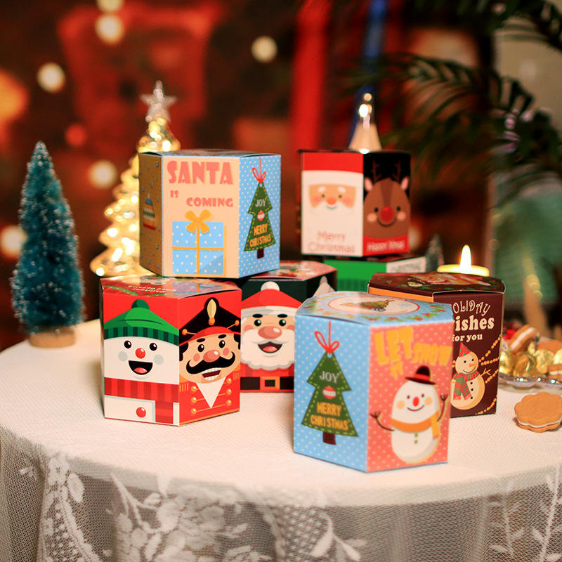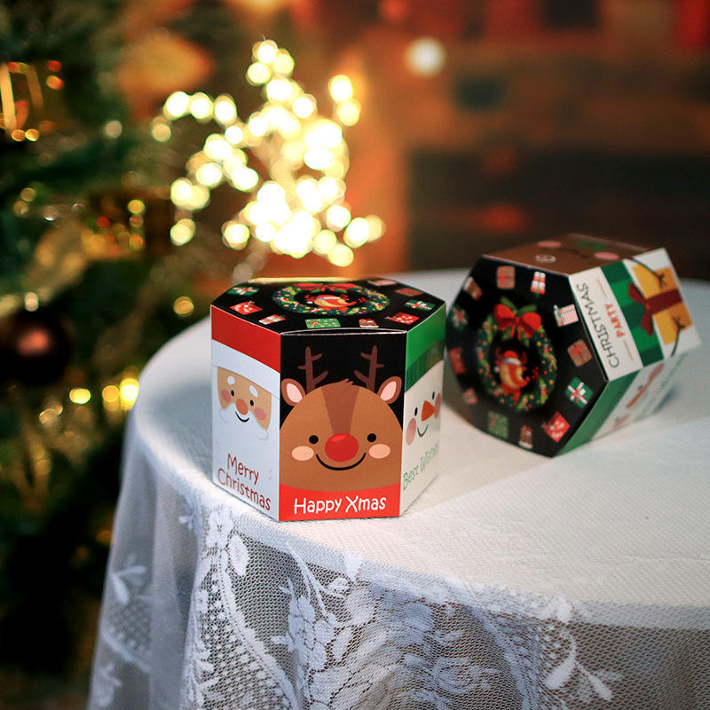 Scatola regalo di natale con stampa a colori personalizzata scatola di imballaggio per biscotti da forno scatola di carta bianca esagonale