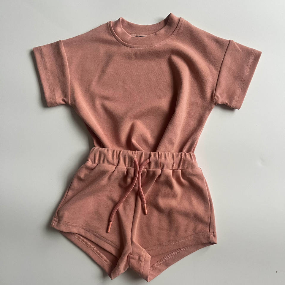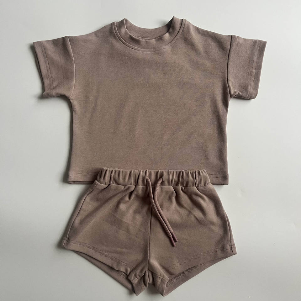 Customized Colors Kids Suit Unisex Outfits Baby Boys' Clothing Sets Infant Boy Summer T Shirt and Shorts Smile Tan Short Set