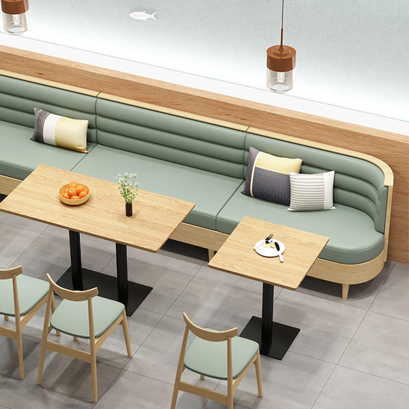 Stile commerciale personalizzato pannello in legno stand ristorante divano posti a sedere in tessuto tavoli e sedie Set per alberghi sale caffetterie