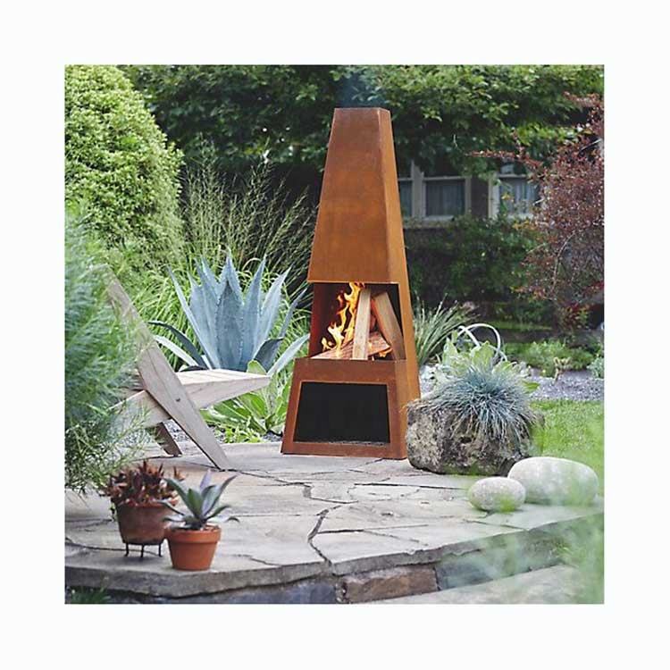 Caminetto da Esterno Autoportante in Acciaio Corten Personalizzato, Caminetto a Legna Autoportante