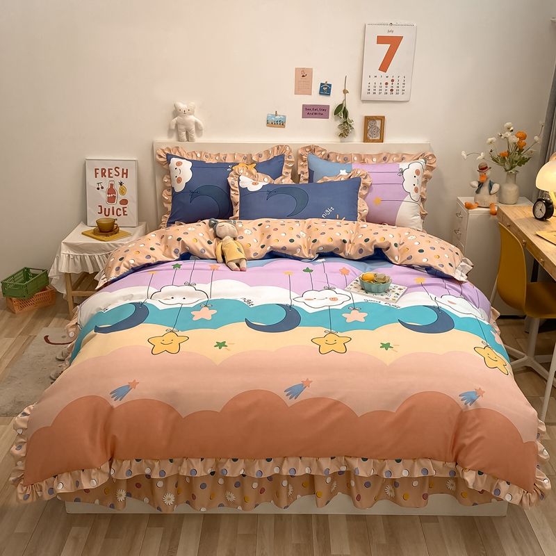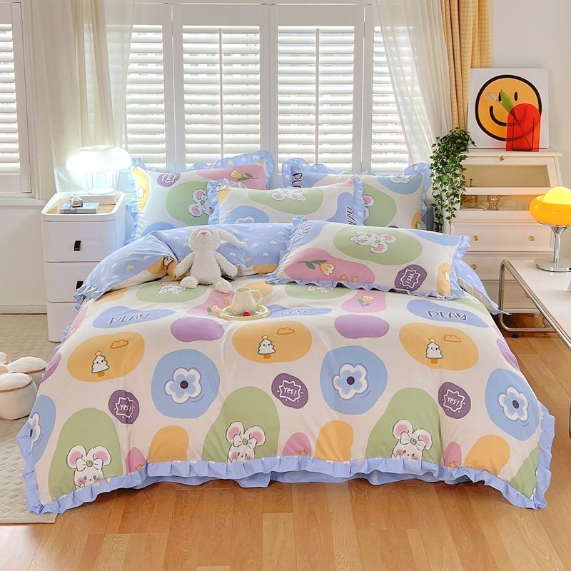 Set di biancheria da letto per bambini in quattro pezzi in cotone personalizzato Set di lenzuola e trapunte spazzolate spesse Set di biancheria da letto dormitorio