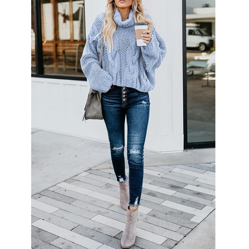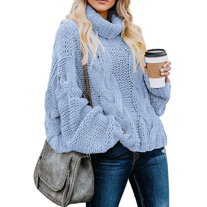 Maglione in Cotone Personalizzato per l'Inverno, Vestibilità Ampia, Collo Alto, Maglione Base in Maglia di Cotone per Donna