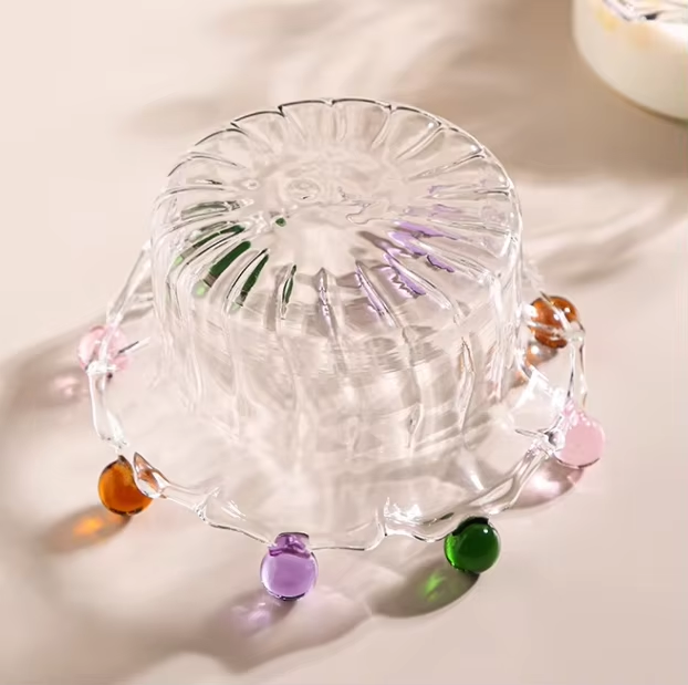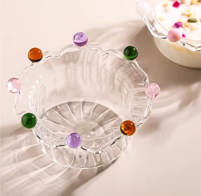 Ciotola di vetro a righe a forma di corona minimalista creativa personalizzata per tornare a scuola per la porzione di Dessert di farina d'avena e Yogurt