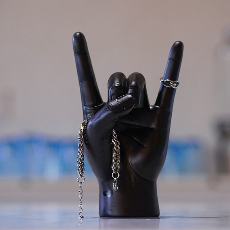 [Personalizzato] Bestseller Transfrontaliero: Statuetta in Resina Dipinta a Mano con Personaggio Musicale Americano in Gesto Rock per Casa e Ufficio