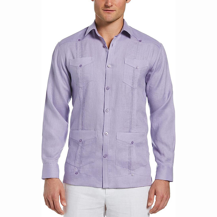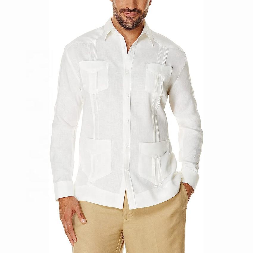 Camicia Guayabera a maniche lunghe a quattro tasche in lino 100% Cubavera personalizzata