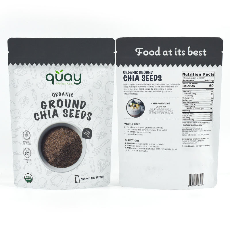 Customed Design Soft Touch finitura Food Stand up Pouch con chiusura normale per semi di Chia macinati sacchetti di Mylar