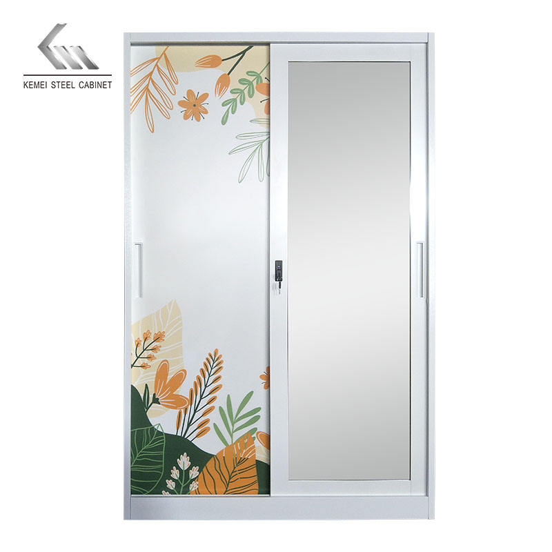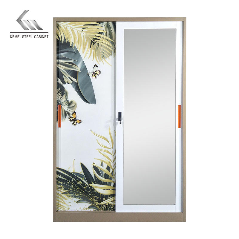 Design personalizzato acciaio Almirah camera da letto armadio due porte scorrevoli in metallo stampa armadio armadio