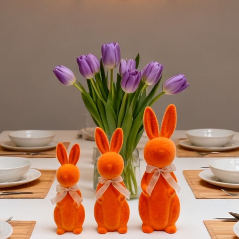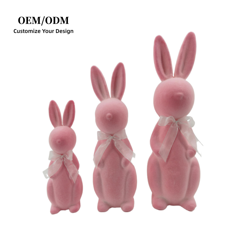 Coniglietti Pasquali Personalizzati, Ornamenti Creativi e Colorati per Interni, Statuette di Conigli in Peluche Finto con Papillon, Vendita Calda in Polistirolo