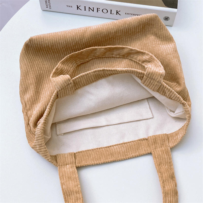 Borse Tote Personalizzate Ecologiche in Cotone e Velluto a Coste con Chiusura Aperta e Tracolla per Donne, Mini Borsette per Pranzo e Shopping
