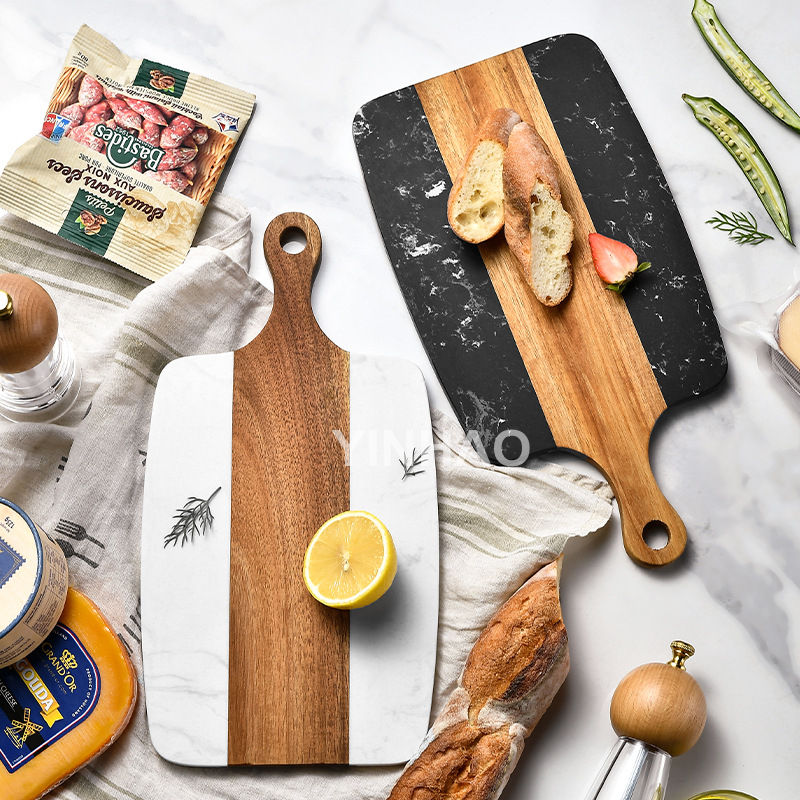 Tagliere in marmo e legno di Acacia in marmo con manico