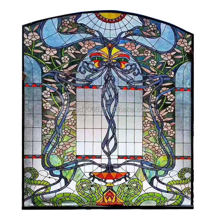 Customized European Style Large Size Chain Tiffany Stained Cut Glass for Wall and Window Tempered Verre
