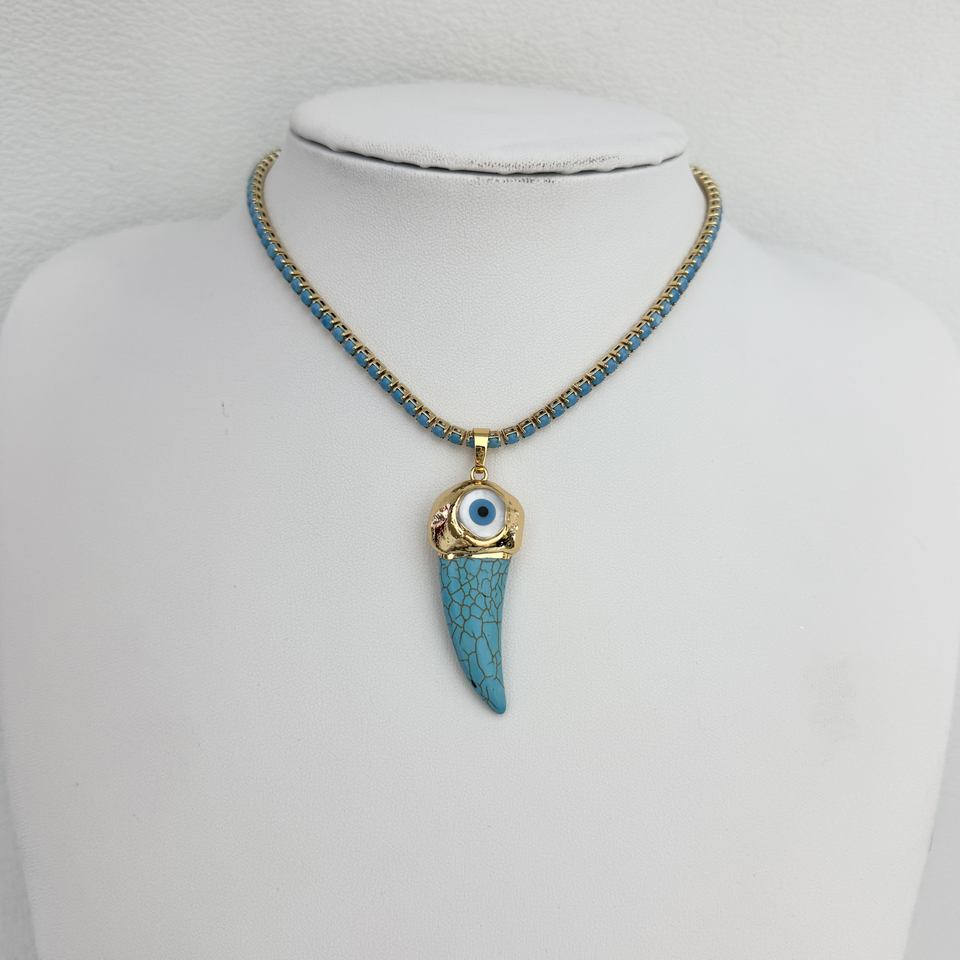Collana Personalizzata alla Moda con Cuore in Perline Dorate Blu, Ciondoli a Corno con Occhio, Gioiello di Lusso in Cristallo, Regalo per Feste, Vendita all'Ingrosso